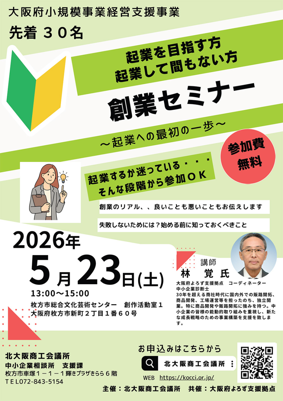 | 場 所 | 枚方信用金庫交野支店/北大阪商工会議所交野支所/大阪府引継ぎ支援センター |