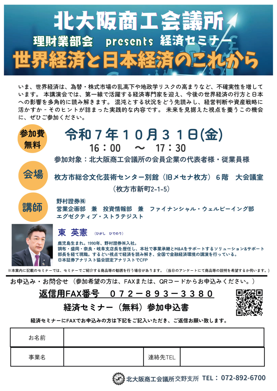 大阪府枚方市・寝屋川市・交野市をエリアとする地域総合経済団体です