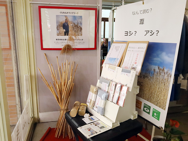 また数年前から、淀川の河川敷に自生する「葦(ヨシ)」を活用した地域ギフトブランド「くらわんかFABRIC」も手がけています。枚方の新たな特産品として、ヨシおてふきんやストールなどを展開しています。